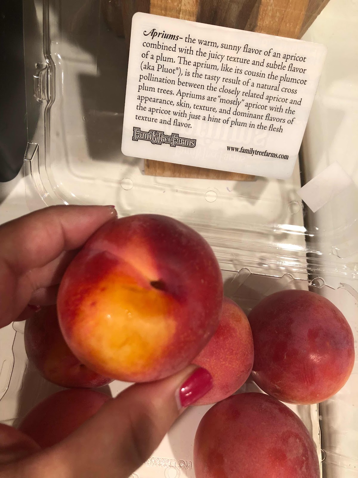 This time Apriums was the fun find. They are a cross between an apricot and a plum. I had to buy them and even bought some for my Dad who is a huge fruit fan and loves trying new things.