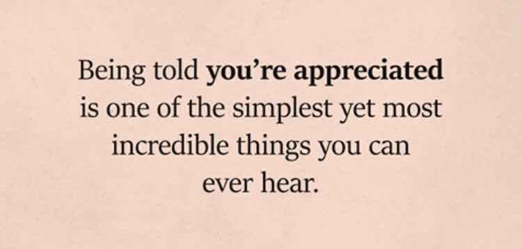 Amen. A simple yet great thing to hear and say. When was the last time you told someone you appreciated them? When was the last time someone said they appreciated you?