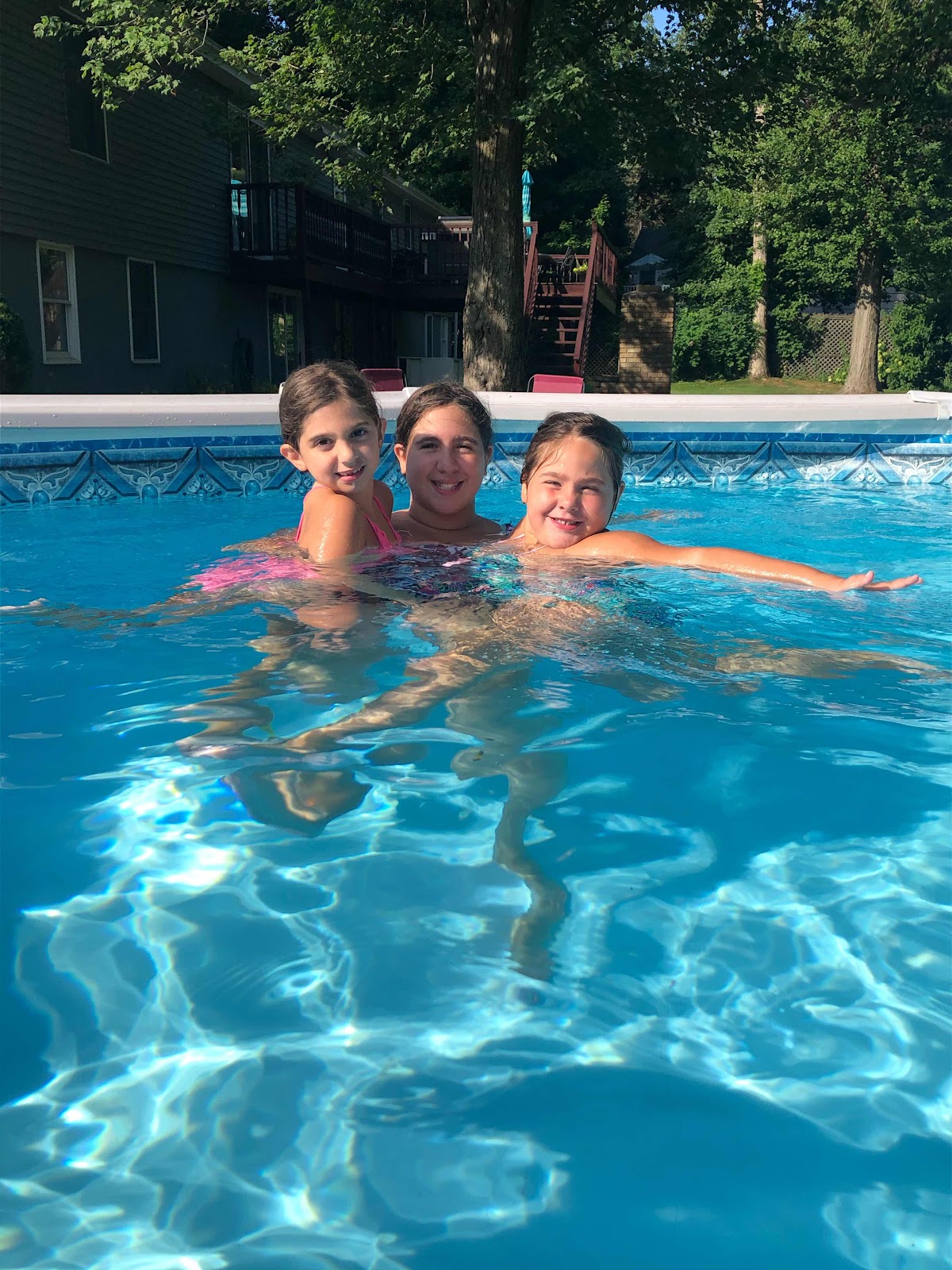 I love working out in the morning. I even have these three join in and now we swim after. It’s honestly the perfect way to start the day. I make sure we do laps around the pool. We swim for about 45 minutes. Then we go inside get dressed. Have breakfast and begin our day.