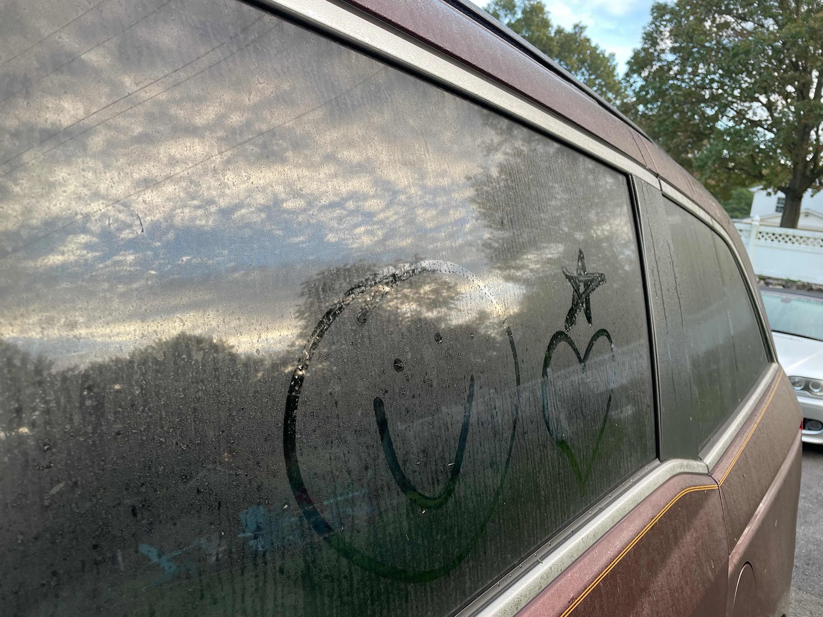 I see this on my window. Most morning they draw on my car but today I stopped and took it in.
